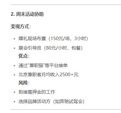 DeepSeek分析:找个风险低的兼职,最好是利用周末就能轻松赚钱。