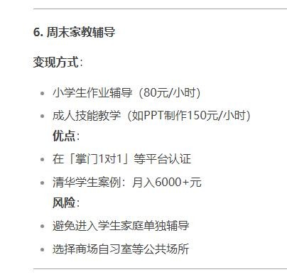 优点:在「掌门1对1」等平台认证清华学生案例:月入6000+元