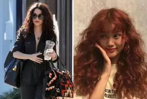 有点爆炸头既视感的长发蛋卷头,是超级显脸小的,将头发染个棕色的颜色,或者酒红色的染发,都是可以为发型提升时尚感的,要显脸小就可以在刘海上下功夫,适合选择中分刘海和空气感刘海,都可以修颜显脸小。