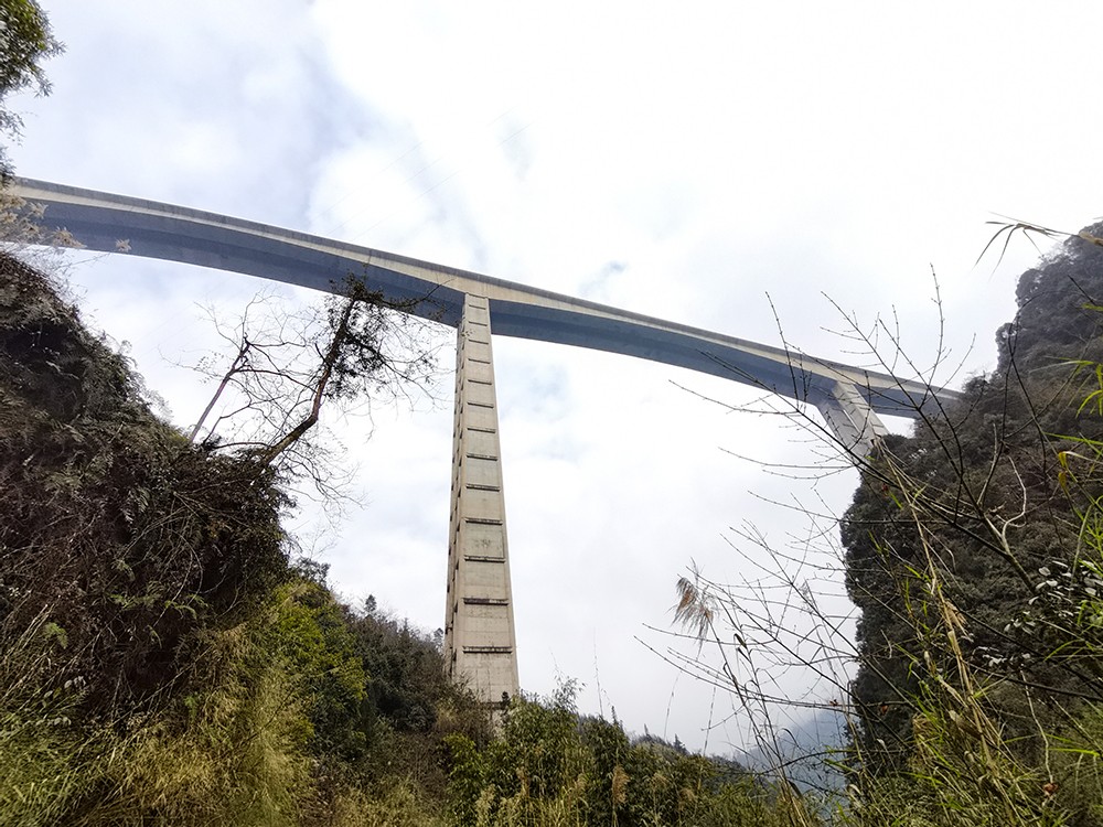 荥经县龙苍沟境内的腊八斤特大桥,创造了高速公路桥梁世界第一高墩的建筑记录。