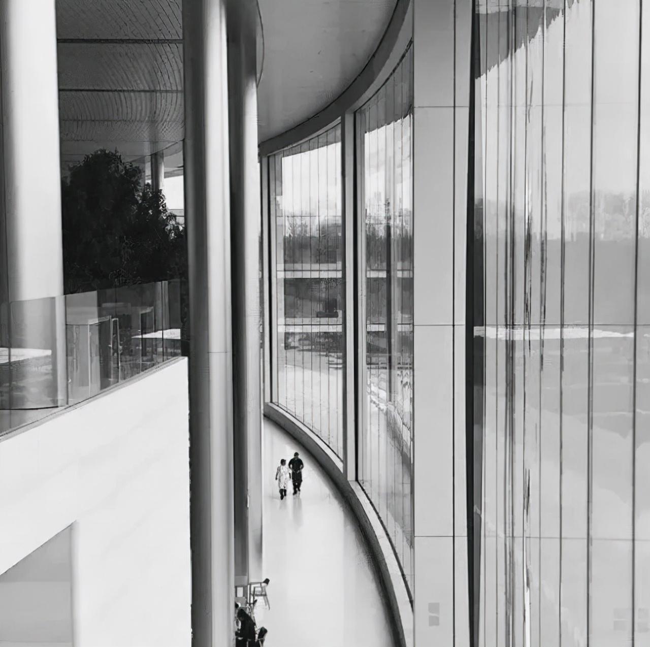 整个建筑的立面就是一块块拼接的弧形玻璃,这些玻璃都是尺寸非常非常大的玻璃。