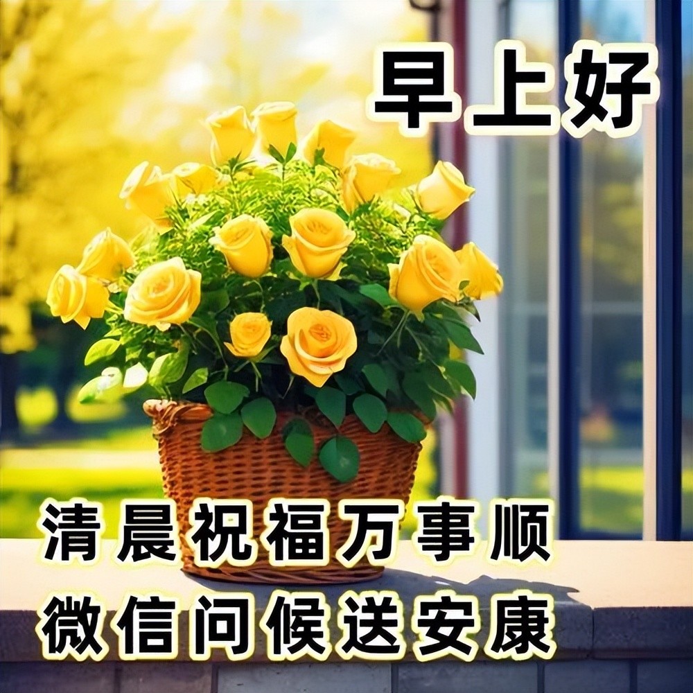 朋友,早安吉祥!问候与祝福常伴你左右,愿你幸福快乐,健康平安!迎接崭新的一天,愿你生活美好,心情愉悦!