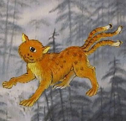 别名风狸。似貂,青色。火烧不死,刀砍不入,打之如打皮囊。用锤击其头数千下方死,但只要其口入风立即复活。用菖莆塞其鼻方可杀之。其溺可入药,其脑和菊花服满十斤可寿五百。