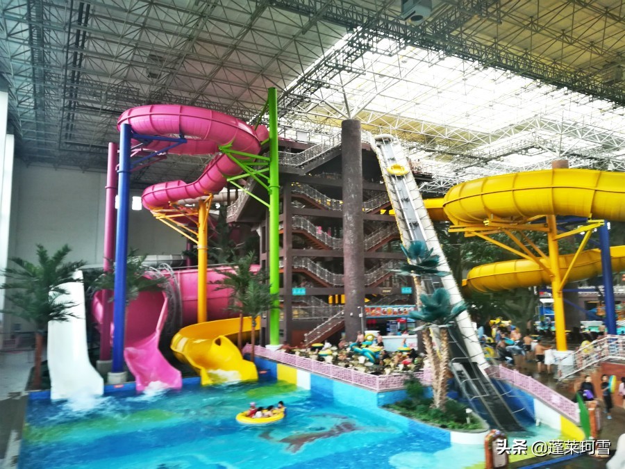 东北的很多游玩项目都是建在室内的,这个热高水世界也建了一个很大的室内水世界,所以在寒冷的冬季,这里也可以游玩。这里也是各种游玩项目都有。可能是为了节省空间,有的游玩设施倾斜度更高,几乎就是直上直下,甚至比室外的还要刺激。