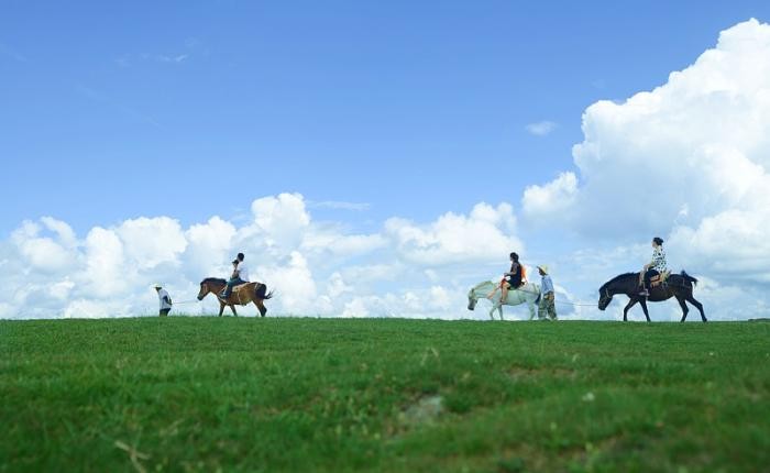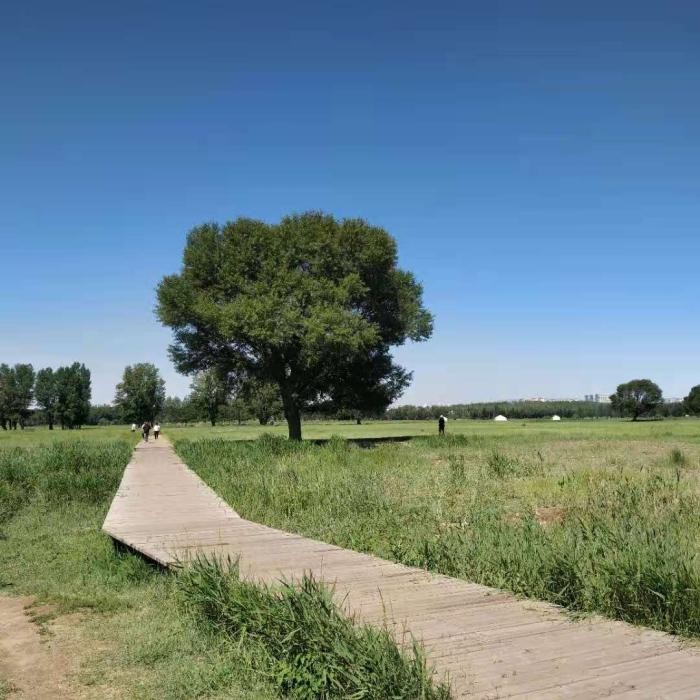 赛罕塔拉城中草原内大部分为天然草场,树植多为红柳和小叶杨,放眼望去,草与树的和谐搭配,形成了天然的疏林草地景观,每当夏季来临,景区内水草肥美,鸟语花香,一眼望不到头的绿色与蓝天相接给人一种融入大草原的感觉,“天苍苍,野茫茫,风吹草低见牛羊”的绝美画面瞬间在眼前展现出来。