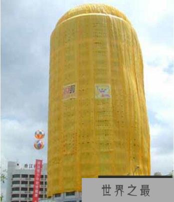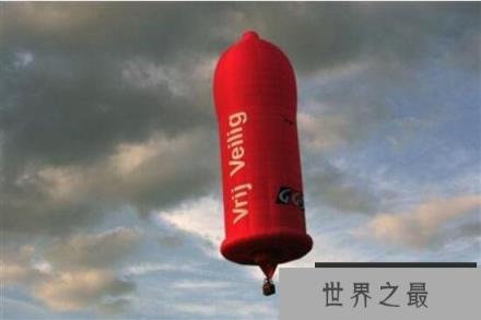 桂林市区中心突出位置、黄金地段,有一座高级宾馆----桂林香江大饭店,其20层左右的主体大楼,是很醒目的高大圆柱体,很修长,本来就很像个安全套,然后大楼外面罩着一个黄色的乳胶制大罩子,那就是一个巨大的安全套,高67.8米,岂不是比这个红色热气球大多了?它才是货真价实、如假包换的世界最大安全套!而且早就被收录到上海大世界吉尼斯纪录了。