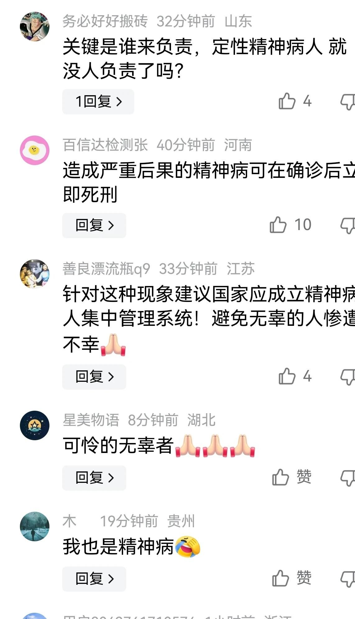 首先这名四十多岁精神病患连自己母亲都杀,凶手患有精神病一定是事实。并且据村民们所说,凶手最开始行凶的就是他自己的母亲。唉,多么遗憾,刚刚才过去的母亲节。