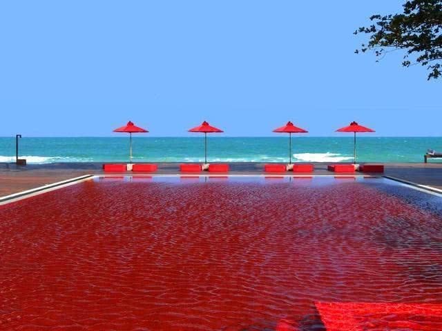 第二个就是红色游泳池,这种鲜红的颜色让人感到害怕,对于晕血的人来说更是一种噩梦,