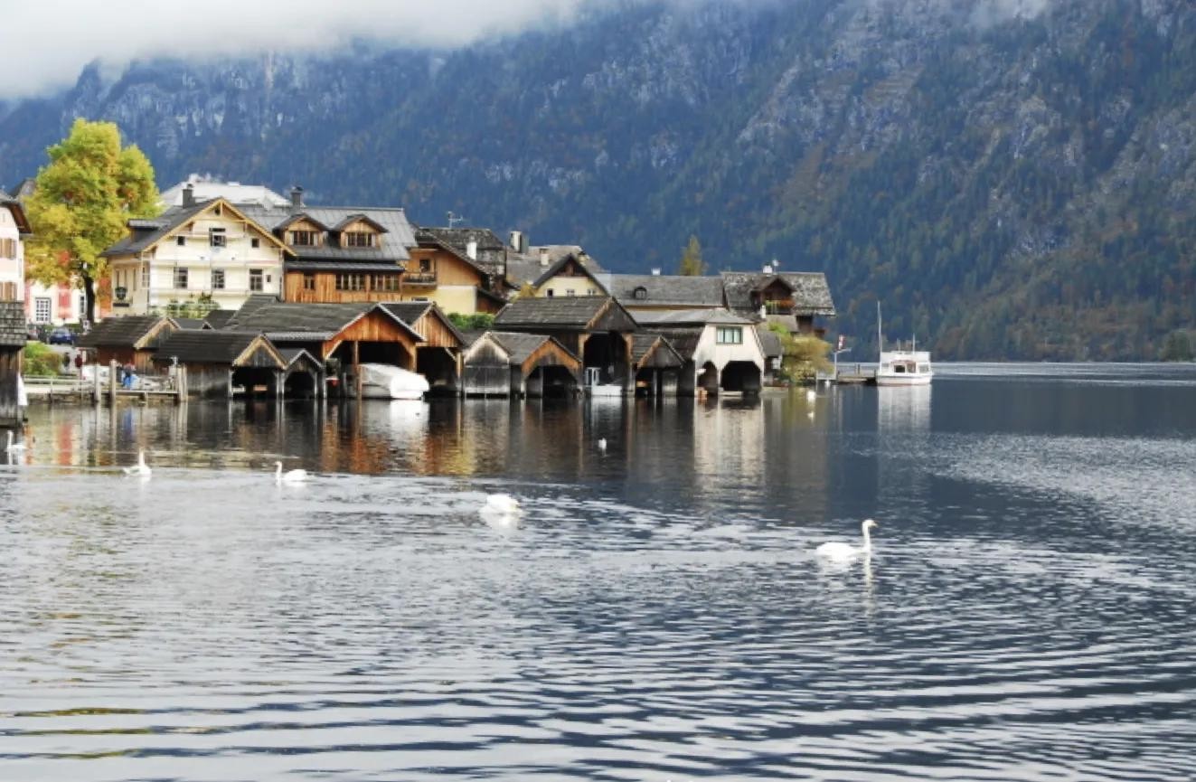 哈尔施塔特(Hallstatt)小镇,位于奥地利上奥地利州萨尔茨卡默古特地区哈尔施塔特湖畔,仅有一千余人口。这里群山环绕,湖水清澈见底,湖中天鹅游弋,四季风光无限。小镇民居清一色用木材建造,但家家独具特色,没有雷同。它是奥地利最古老的小镇,有着悠久的历史文化,拥有联合国教科文组织世界文化遗产的头衔。可以毫不夸张地说,哈尔施塔特就是世界最美小镇。