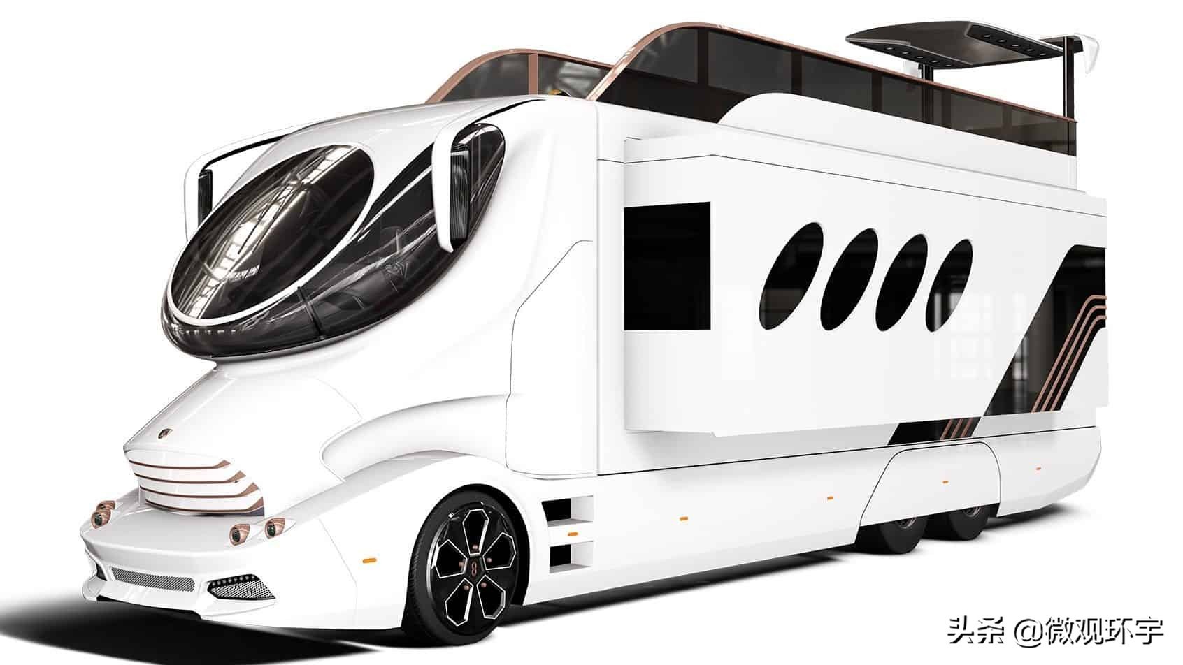 这款豪车的创建是为了将旅行提升到伟大的艺术水平,它将美妙的空气动力学美学与许多便利设施和奢华结合在一起,提供全球最佳旅行体验。它有许多房间,每个房间都装饰着优雅的家具,包括雪松木、瓷器和石英。这辆房车是个完美的家,总价值100万美元。
