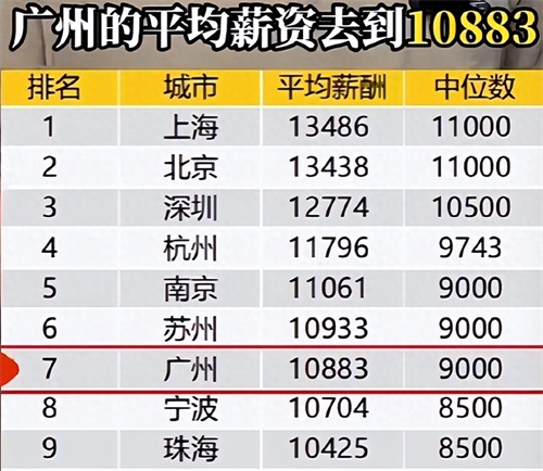 广州2023年平均薪资达10833元成为中国十大高薪城市