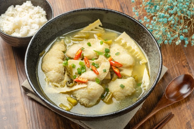 10. 酸笋鱼:酸笋鱼是一道以鱼为主料,配以酸笋、辣椒等调料制成的传统菜肴,口感鲜美,味道酸辣可口。