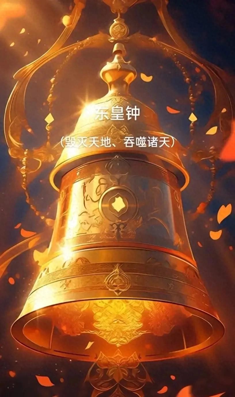 东皇钟:据说乃十大神器之首,拥有毁天灭地、吞噬诸天的威力。在神魔之战时受到重创,后隐匿于人间界。