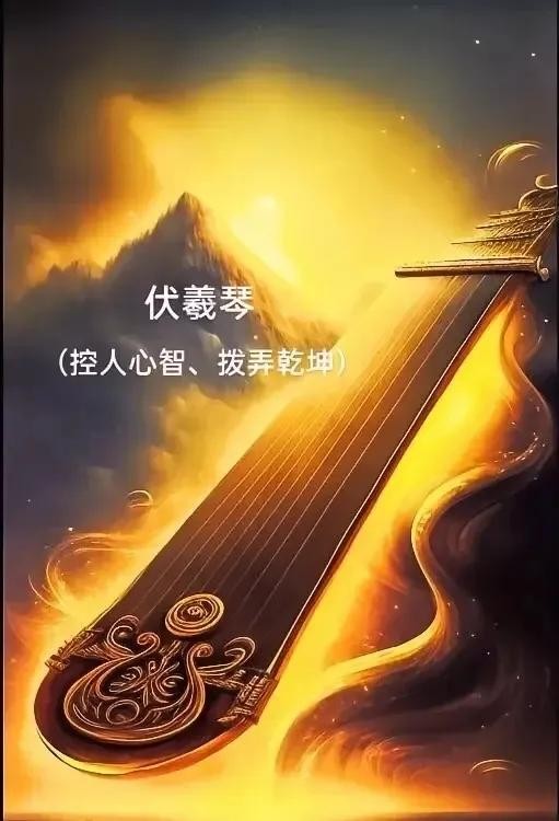 伏羲琴:伏羲以玉石和天丝制造,琴声能净化人心、支配万物生灵心智。