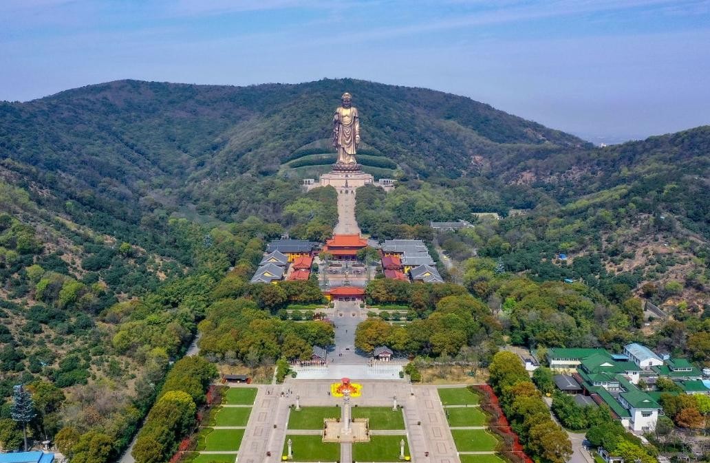 中原大佛通高 208 米,其中佛身高 108 米,莲花座高 20 米,金刚座高 25 米,须弥座高 55 米,佛像铸造耗用黄金 108 公斤、铜 3300 吨。当你站在大佛脚下,仰望其高耸入云的身姿,那庄严肃穆的面容、慈悲祥和的眼神以及雄浑壮观的气势,仿佛有一种无形的力量,能让你的心灵瞬间沉静下来,感受到信仰的强大力量和人类工艺的精湛绝伦。阳光洒在大佛身上,金光闪耀,更增添了几分神圣庄严的气息,令人不禁感叹其雄伟与震撼。