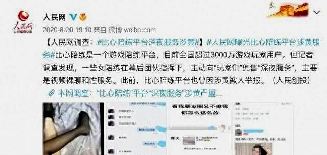 去年8月20日,人民网曾经报道了比心陪练存在涉黄服务的情况。报道指出,一些女陪练以游戏陪练的名义向玩家销售视频裸聊等深夜服务,并且公然标价,甚至形成了完备的业务链。虽然比心陪练在受到批评后表示迅速采取行动,永久封禁了超过2万个涉黄账号,并声称对一切违规行为持“零容忍”态度,但值得注意的是,这次被下架的APP中仍然包括比心陪练。