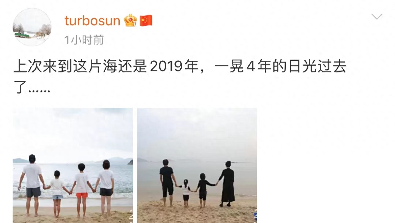 就在10月6日,孙俪在社交媒体上晒出了一张全家福照片。这张照片将她、丈夫邓超以及两个孩子等等和小花聚集在一起,他们一家四口站在海滩上,面朝大海,手拉手,流露出幸福满满的笑容。