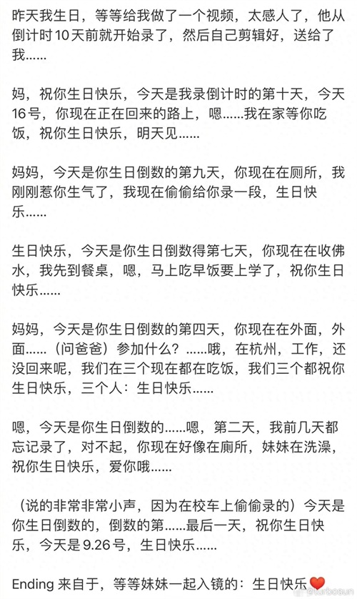 而等等则为孙俪录制并剪辑了生日倒数视频,这份贴心的举动让孙俪感动不已。