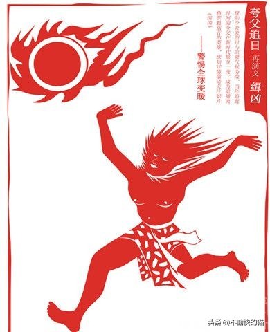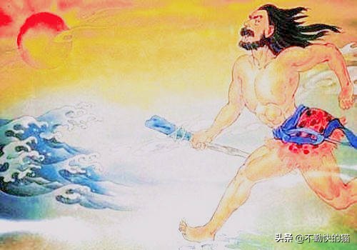 为此夸父一族的人们就推选出来夸父这个代表让他去追赶太阳。夸父正直年轻气盛,身强体壮,而且意志力坚强,对于族人选他当追赶太阳的代表后他非常开心兴奋。他双耳挂两条黄蛇、手拿两条黄蛇,迈开双腿,去追赶太阳。他象一阵风似的跑起来,眨眼之间就跑出了几百里。