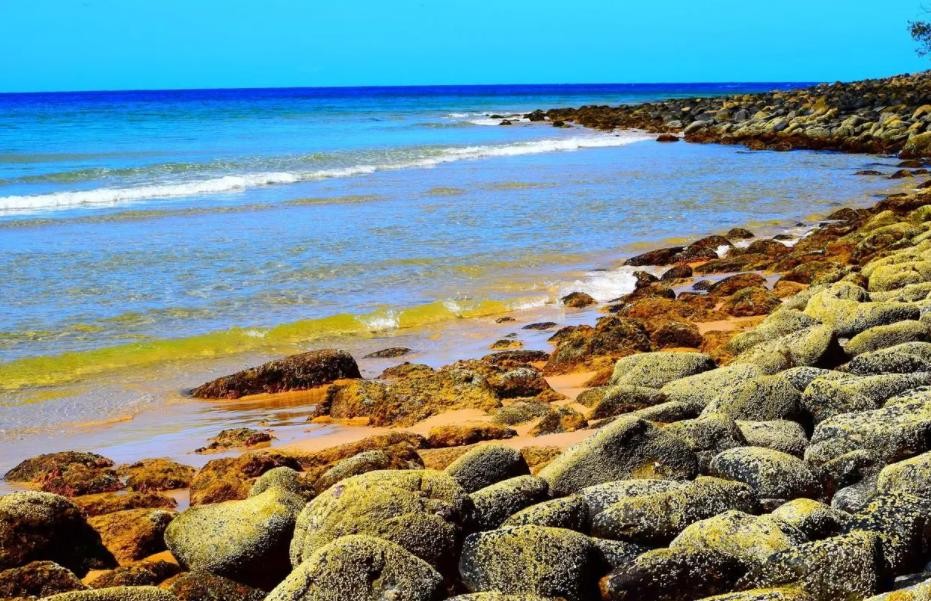 5. 北海五彩滩景区:五彩滩是一片由石头构成的奇特地貌,这些石头呈现出丰富多样的颜色,如红色、黄色、绿色、蓝色等。这些彩色的石头是由于地壳运动和自然风化作用形成的,给人一种独特的美感。此外,景区还设有观景台,游客可以从高处俯瞰整个五彩滩景区的美景。