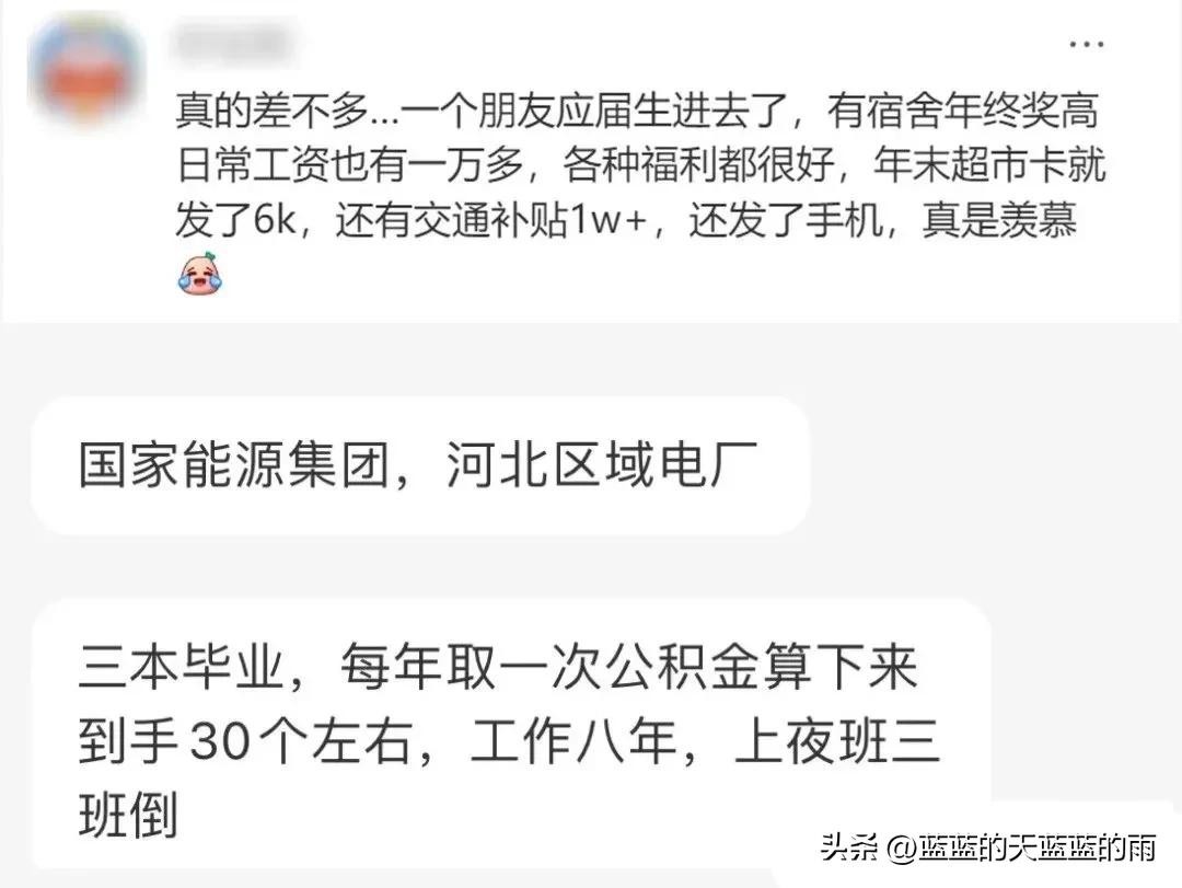 新疆能源:25万+年薪,另配安家费神华北京:经理月薪2万,项目经理1.5万南方电厂:基层岗位14-15万