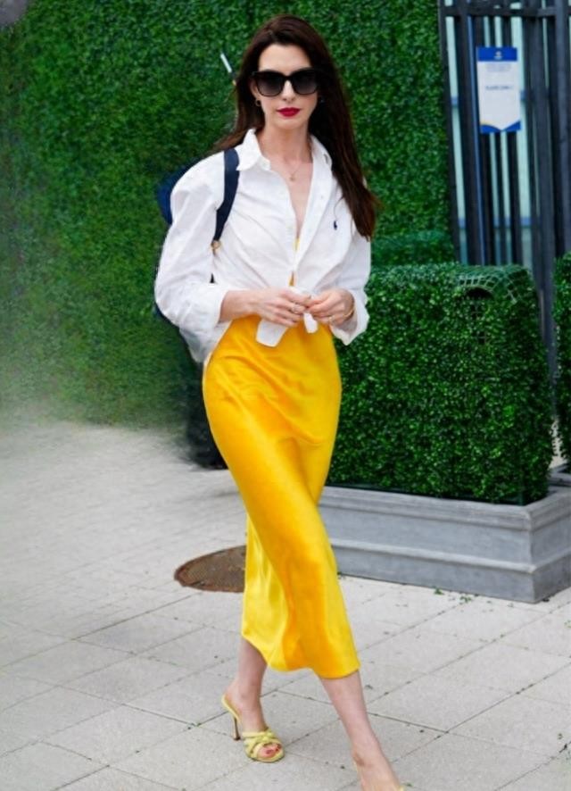 卡罗琳以白衬衫和黑裙子的组合展现了她端庄性感的形象。在日常休闲场合,白衬衫也能展现出别样的魅力。贝拉选择了搭配腰包和露出衬衫下摆的设计,