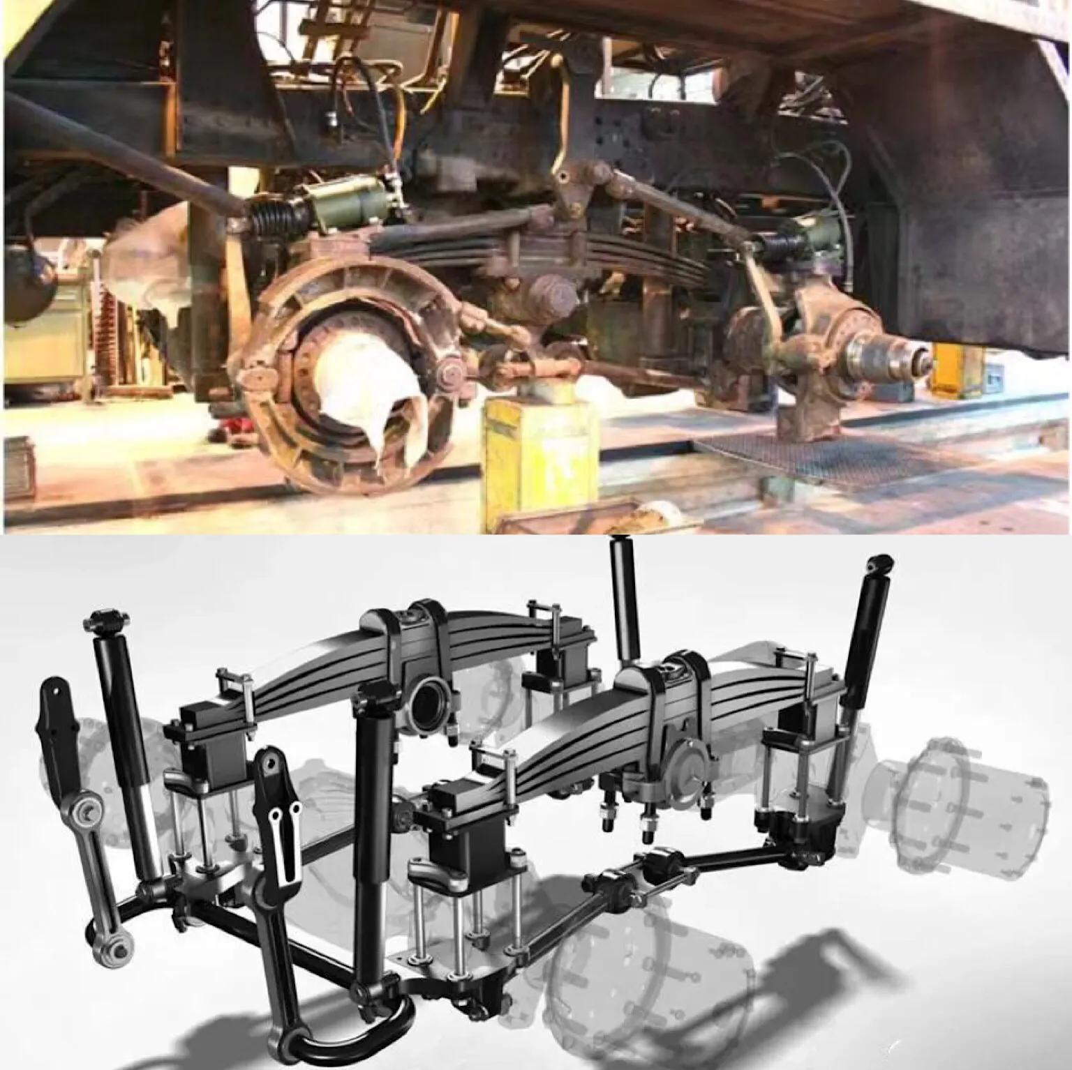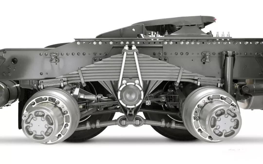 “钢板弹簧悬架”因为两个车桥间距接近,逐步完善为像M4“谢尔曼”坦克负重轮那样,每两个轮子共享一个与车体衔接的轴杆配置方式,也叫“平衡悬挂”。在“平衡轴”这一点上,目前可分为整体式和断开式两种,尤其以“整体式”较常见,具有结构简单、坚固耐用的优势。