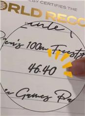 视频中,潘展乐拆开快递包装,从中拿出一份世界纪录证书,上面用英文写道,潘展乐在巴黎奥运会创造了男子 100 米自由泳世界纪录,时间为 46 秒 40。潘展乐在展示证书期间,也不忘 " 凡尔赛 " 一波,表示自己已经拿到两个了," 已经不稀有了,上面的数字才稀有。"