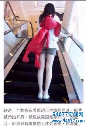 前段时间有一张这这样的照片被疯狂转载爆其是美国最恐怖的一张照片,无论是在贴吧还是微信圈都能看到它的身影,照片上是一个女孩背着一个红色玩偶包包在美国某超市上电梯的情景,据听说只有看懂的人才会害怕,不知道你看懂了,这张照片到底恐怖在哪里。