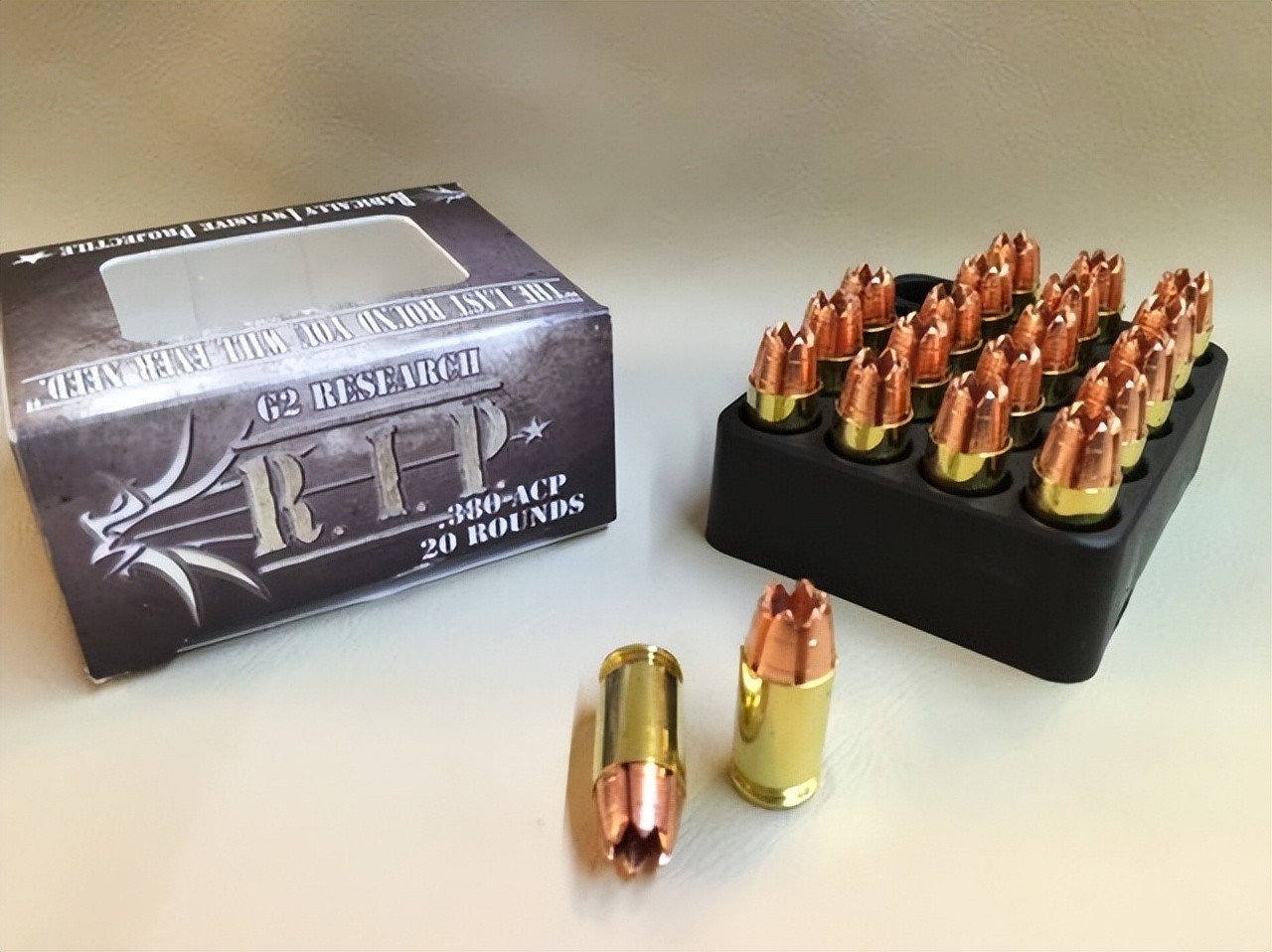 除了穿透力差以外,这种子弹的精准度也不好,25米的存速能力很差。RIP子弹的弹头阻力很大,这导致它的弹道系数很难看,只能勉强的用在手枪上。