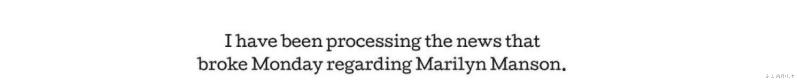 关于玛丽莲.曼森的新闻,万提斯用的是“I have been processing”。这表示她知道事情的经过与内容正在处理情绪,但是没有震惊或是气愤一类的形容词,显得很专业。