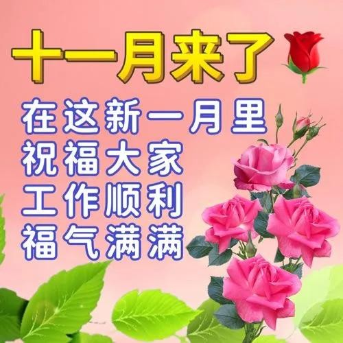 一声问候到身边,万事如意送平安,笑口常开心舒畅,健康幸福每一天,十一月来了,真心祝福朋友十一月里平安喜乐,愿你万事顺遂,好运连连,身体健康,家庭美满,幸福快乐!
