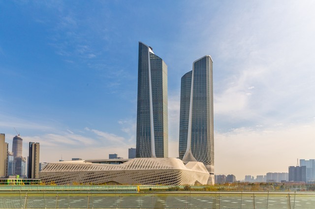 南京青奥大厦位于南京市建邺区,由著名建筑设计师哈迪德设计,最大高度314.5米。