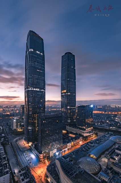 成都金融城双子塔又名天府双塔,位于天府大道北段,由两栋220米超高层建筑构成,它的高度不是最高的,但名气绝对是最大的,双子星灯光秀非常有名。