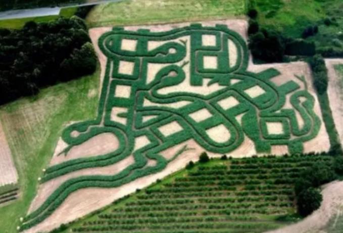 蛇梯迷宫在英国东部肯特郡小镇厄普丘奇的高尔农场。这个木艺工设计的十分复杂,也申请了世界吉尼斯纪录,是世界上最大的蛇梯迷宫。