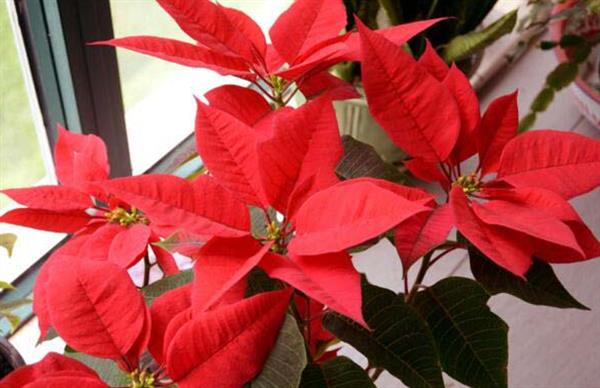 其实一品红本身的花朵并不大,但是最漂亮的地方在于开花的时候,上面的叶子也会变成红色的,这样他的画看起来非常漂亮。