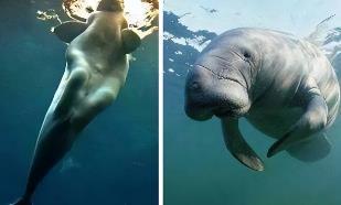 不得不说,就连小编看了都觉得十分的相似呢!看这迷人的双腿曲线,就好像儒艮皮囊里面藏了一个动人的美女,确定美人鱼无疑了!但是实际上,人家的名字叫儒艮啊!这就是儒艮为什么叫美人鱼的原因了,相似度简直达到了80%!