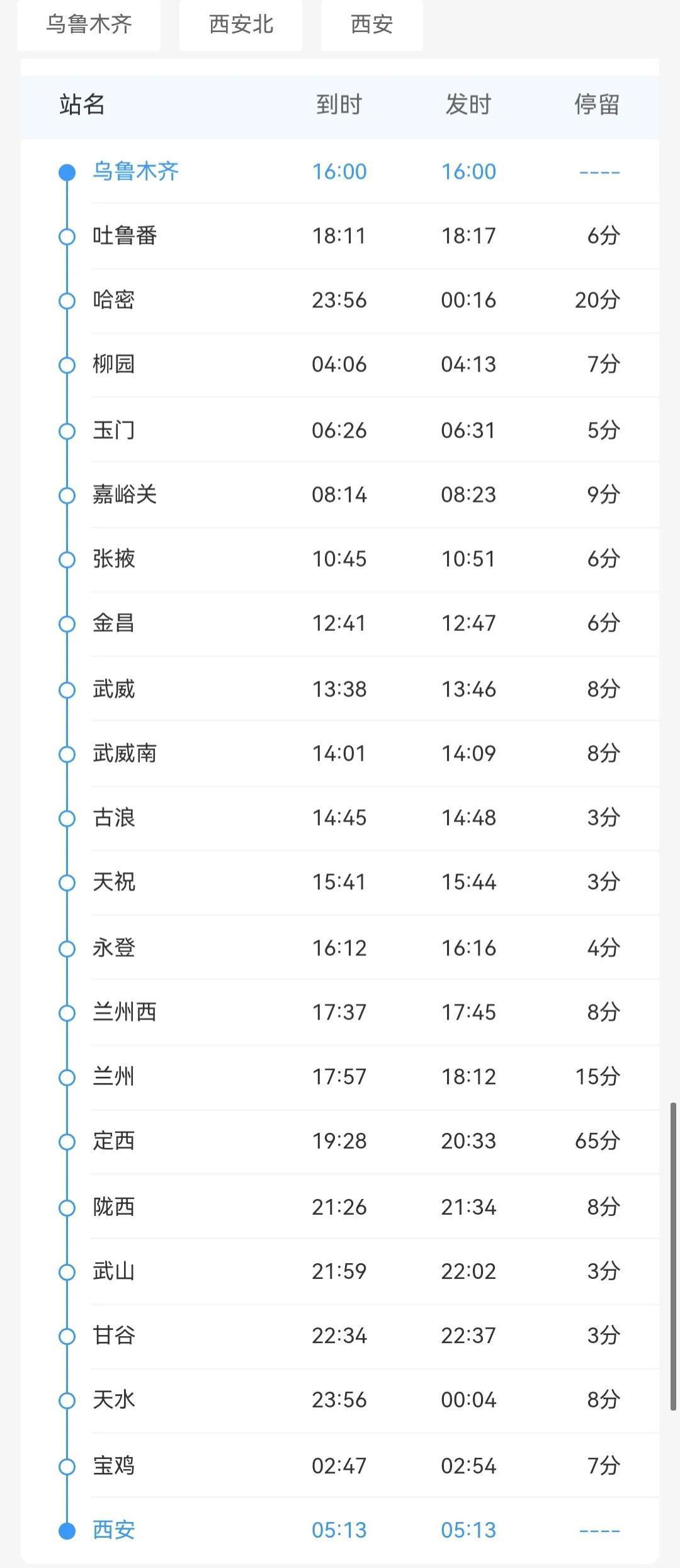 运行时间最长的旅客列车之一:从新疆乌鲁木齐至陕西西安