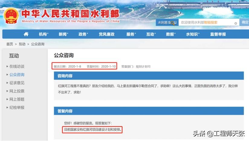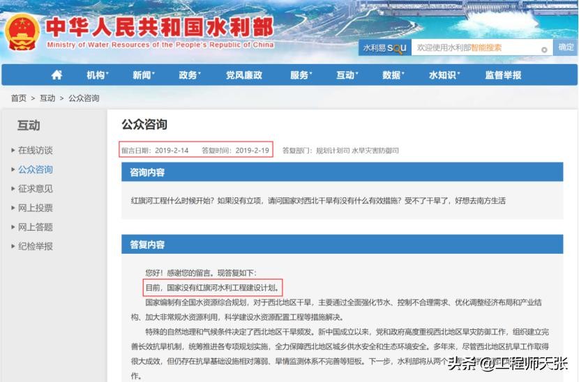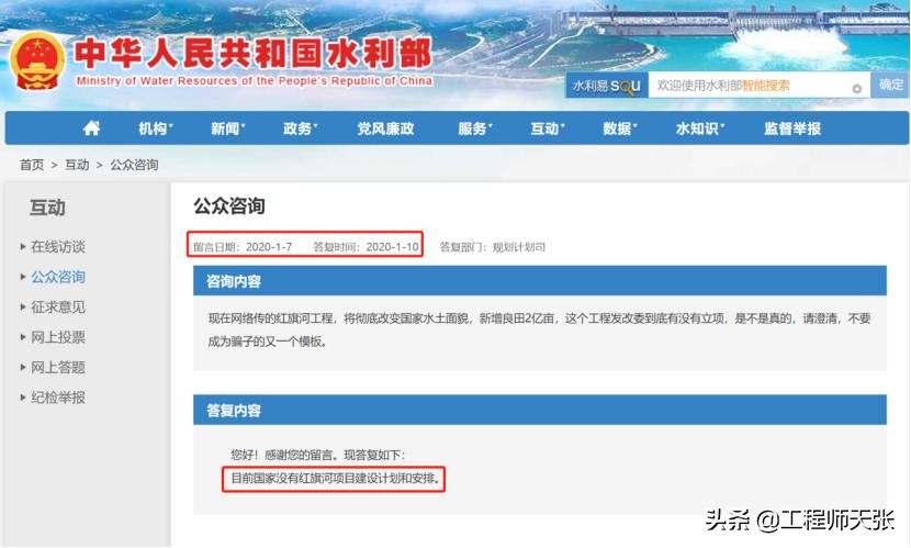 ——2020年1、2月间,水利部密集回应3个公众咨询,答复国家当时没有红旗河项目建设计划和安排。但没有否认有此工程研究或规划。