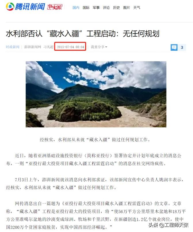 ——2015年网传藏水入疆工程启动,但随后在7月份水利部否认有此规划。