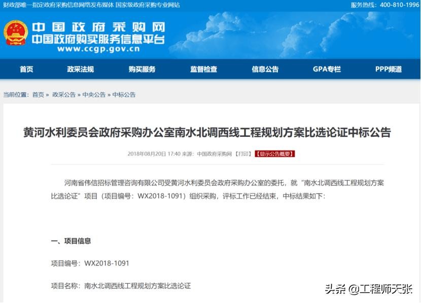 ——2018年8月,黄河委代表水利部完成论证政府采购招标,其中包含了对“社会各界“大西线”等调水设想(方案)的初步分析与评价”。