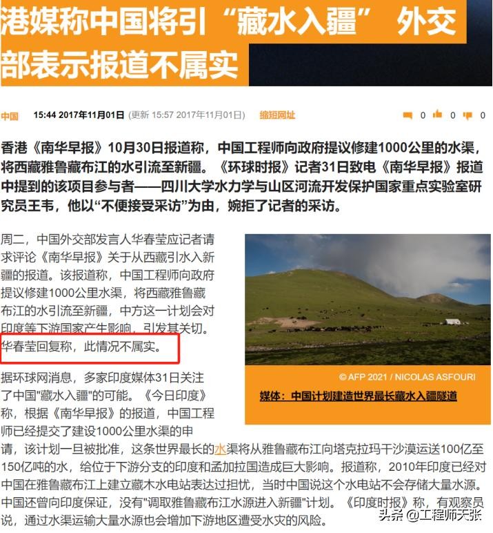 ——2017年发生中印洞朗对峙事件,10月30日,外交部称“藏水入疆”工程不属实。