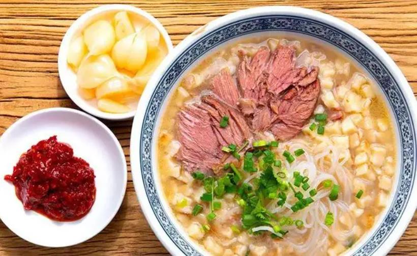 煮馍的汤更是考究,选用的牛羊肉、香料以及火候都十分严格。掰好的馍煮时会加入粉丝、木耳、大片的牛肉或羊肉等配菜。吃馍要糖蒜和辣椒酱,吃上这样一碗汤浓肉嫩馍筋的泡馍,什么烦恼都没有了。