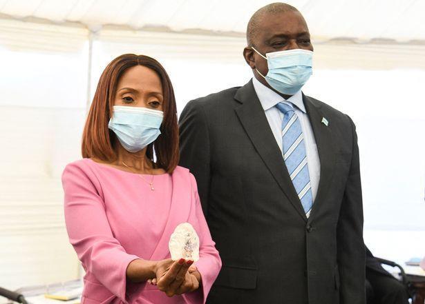 图中男士为博茨瓦纳总统,手持大钻石,是近50年来由戴·比尔斯公司和博茨瓦纳政府合资发现的最大钻石。