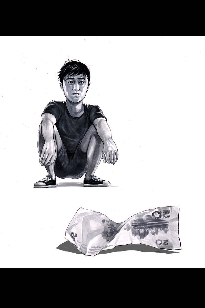 左手韩为筹措房租,去街头卖艺。