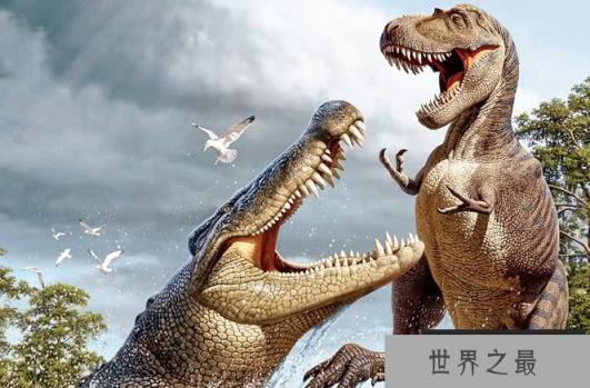 帝鳄是史前的一种鳄鱼,和恐龙处于同一个时代,而且偶尔还会突然冒出来吃掉在水边的恐龙。帝鳄体长10米重达五吨,这放在现在是很恐怖的大型鳄鱼,可想而知它的血盆大口咬向恐龙的样子,简直就是鳄鱼之王。