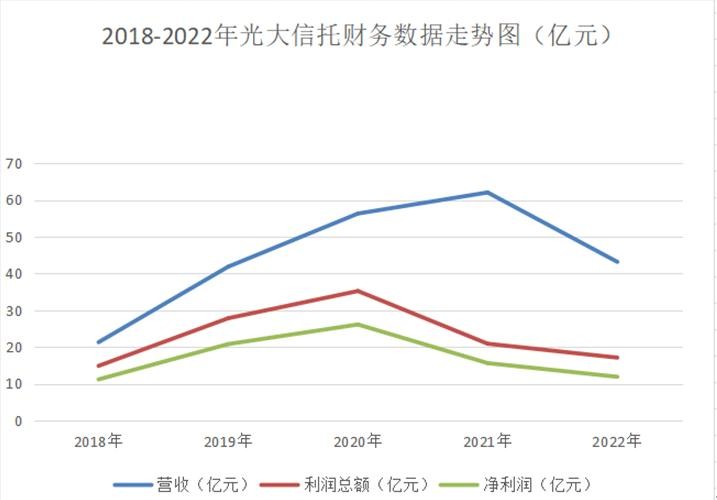 截止到2022年末,光大信托实现营业收入43.16亿元,同比下跌30.43%;实现净利润11.88亿元,同比下降23.81%。光大信托的财务数据和其他信托公司类似,近几年都呈现出下降趋势,这与监管政策调整和疫情反复有很大关系。所以光大信托整体经营情况需要持续关注。