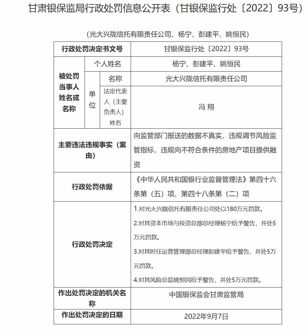 近期高管被查、公司因为未纰漏运营报告、对信托资金管理不到位、向监管报送数据不实、违规向不符合要求的地产公司融资等多种严重的合规问题被处罚。刚兑行为是否合规站长也存在疑问,综上所看,光大信托是少有的有担当敢刚兑