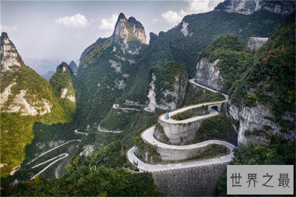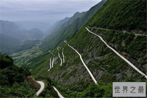 矮寨盘山公路位于湖南省吉首市,这条公路总长6公里,修建在坡度接近直角的山坡上,因此几乎呈现出每一层折转都几乎平行,交通上自然也是非常危险的。