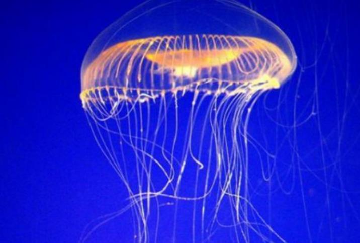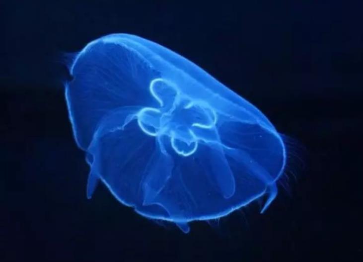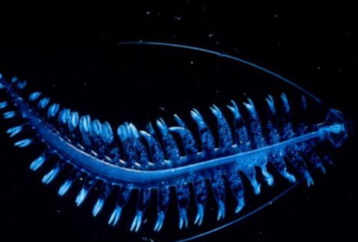 这种水母是非常美丽的发光动物蓝绿色的光。能照亮他的身体,这种动物对于身体有很好的掌控能力,面对危险就能够控制能量运动。